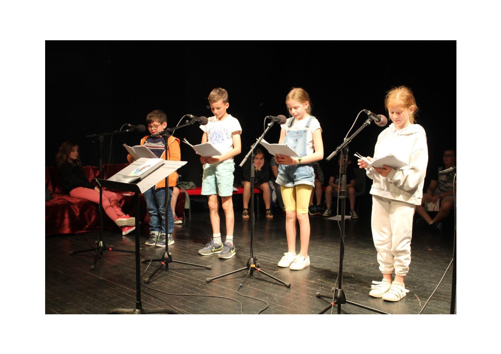 Pendant plusieurs mois, nous nous sommes entraînés pour ce concours de lecture. Nous étions contents de le faire. Cependant, en arrivant au théâtre, nous avons commencé à stresser un peu… Lorsque nous avons lu devant le jury, le stress est redescendu.